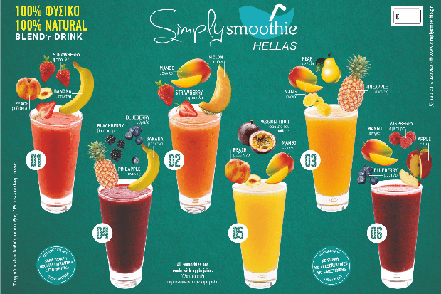 Απολαύστε τα αγαπημένα σας Smoothies με 100% φυσικά φρούτα.
