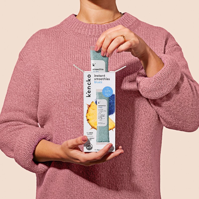 Ανανάς, Ακτινίδιο, Μπανάνα, Μπλέ Σπιρουλίνα: Λατρεύουμε μια μέρα δίπλα στην θάλασσα όσο και αυτό το Blue Smoothie με μπλέ σπιρουλίνα. Δώστε στο σώμα σας μια ώθηση ακόμα και στις πιο δραστήριες ημέρες σας με φυτικά καύσιμα για ενέργεια και μυϊκή υγεία. Κάθε smoothie kencko παρασκευάζεται από 200g φρέσκων προϊόντων και περιέχει 2,5 από τα πέντε φλιτζάνια φρούτων και λαχανικών που συνιστώνται ημερησίως.