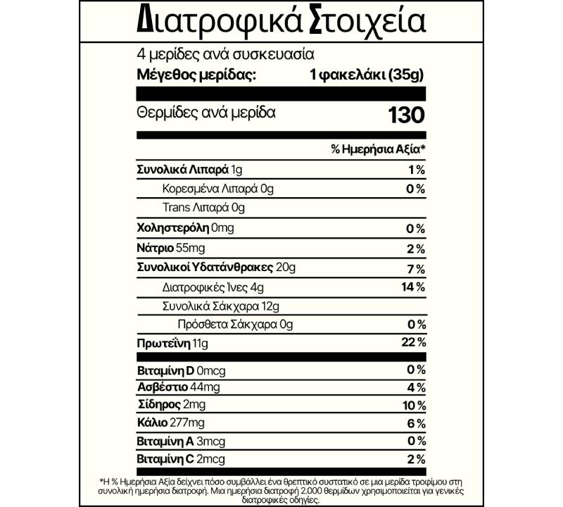 Η φυτική πρωτεΐνη μας είναι μείγμα από μπιζέλια, ηλιόσπορους και σπόρους κολοκύθας, παρέχει και τα 9 απαραίτητα αμινοξέα, καθιστώντας το ένα εξαιρετικά εύπεπτο μείγμα φυτικής πρωτεΐνης.